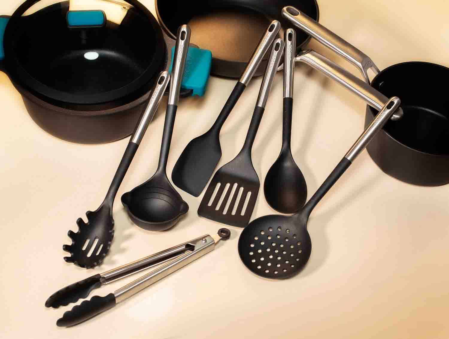 We recommend investing in fewer pieces, but ones made from much more durable materials. Look for ergonomic handles that fit your hand perfectly, and if they are dishwasher safe, even better.