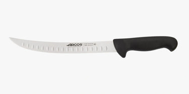 Das geschweifte Fleischermesser von Arcos ist für den professionellen Gebrauch geeignet. Die Klinge verfügt über Kullen, die verhindern, dass Lebensmittel haften bleiben.