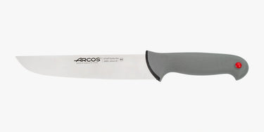 Das Fleischmesser 200 mm ist Teil einer stilvollen Sammlung von Arcos, der Serie Colour Prof. In dieser Serie zeichnen sich die Griffe aus, da sie aus Polypropylen gefertigt und mit elastomerem Gummi überzogen sind, um einen idealen Halt zu gewährleisten. Darüber hinaus hat jedes Messer einen Knopf in einer anderen Farbe, um zu kennzeichnen, für welche Lebensmittel es verwendet werden soll. Der Knopf für das Fleischmesser ist rot.