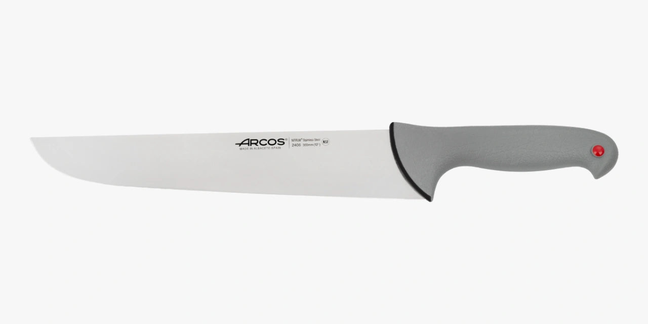Die spanische Messermanufaktur Arcos präsentiert Ihnen dieses robuste, langlebige und effektive Fleischmesser der Serie Colour Prof 300 mm.