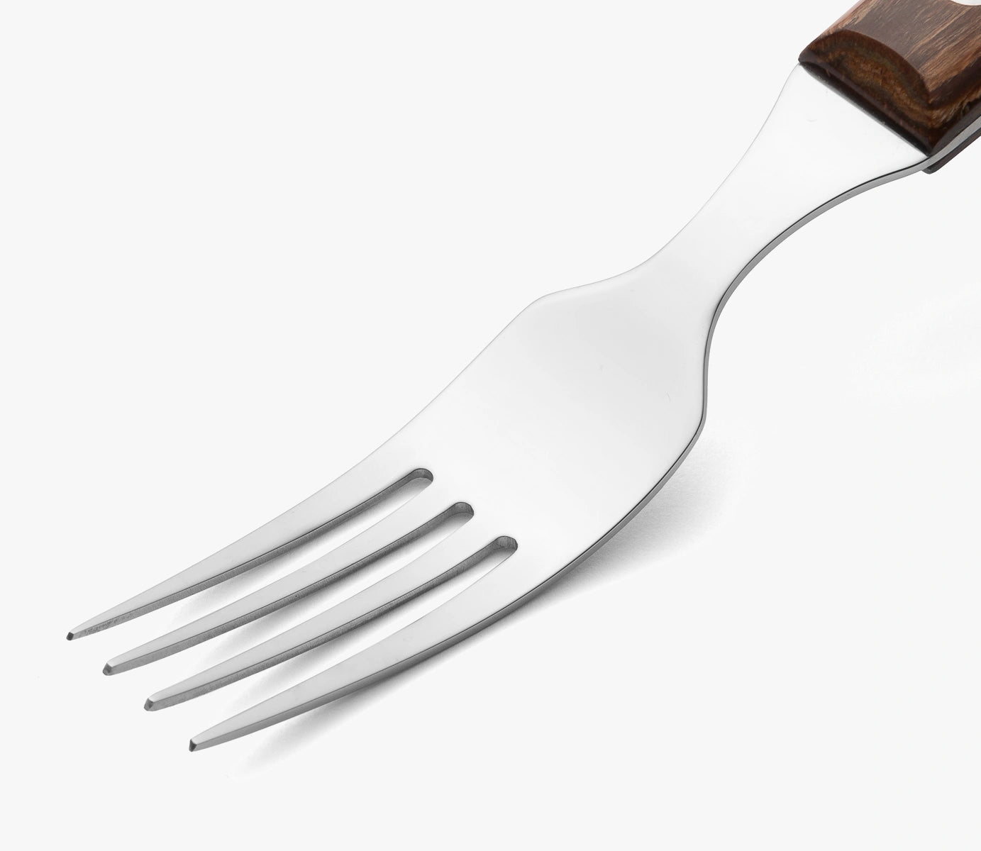 Steakgabel mit Griff aus mehrlagigen Buchenholz von 206 mm Länge. Hergestellt aus Edelstahl 18/10.