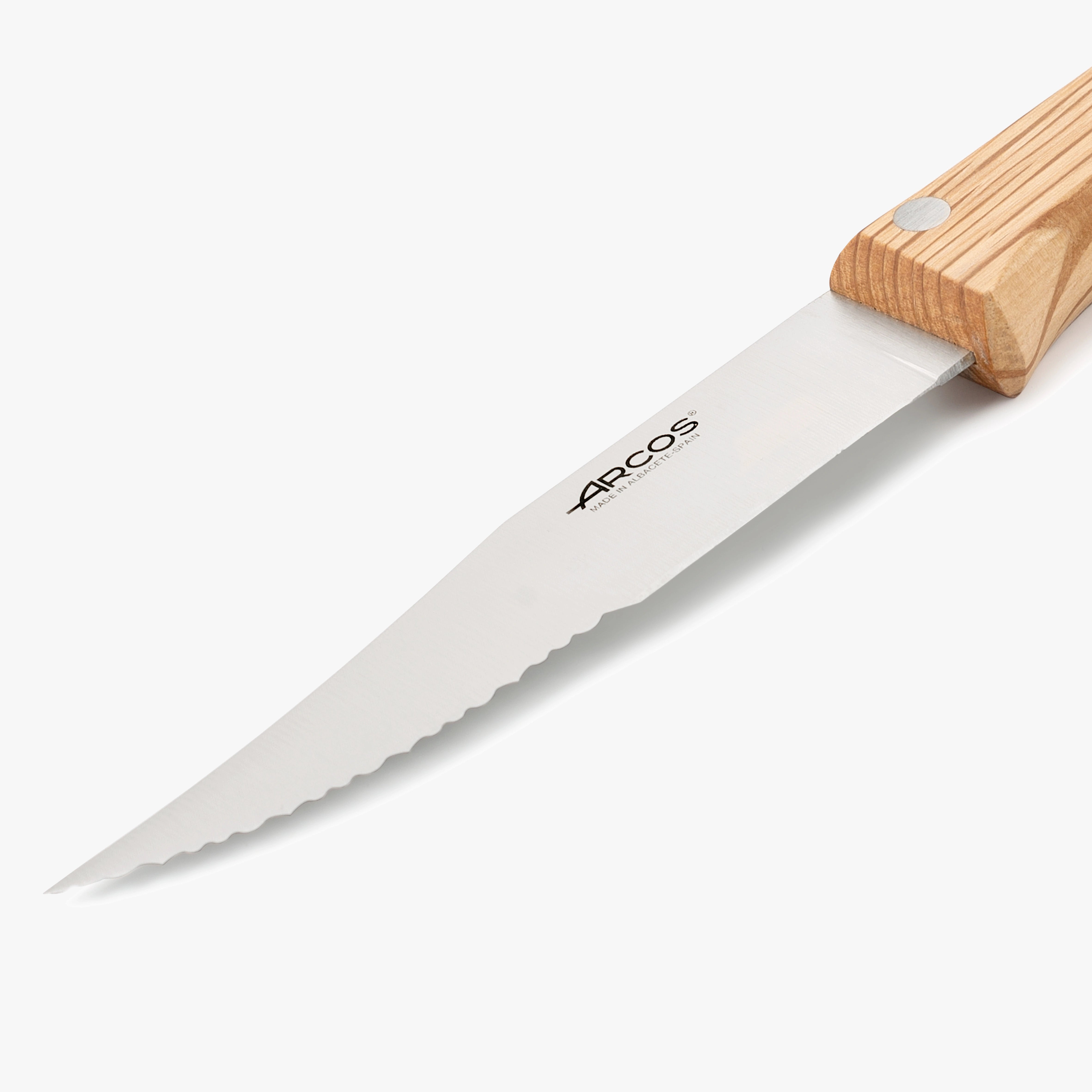 - Zusammenfassend ist das perlige Steakmesser von Arcos eine ausgezeichnete Investition für jeden Fleischliebhaber, der nach einem langlebigen, robusten und eleganten Werkzeug für seine Lieblingsschnitte sucht.