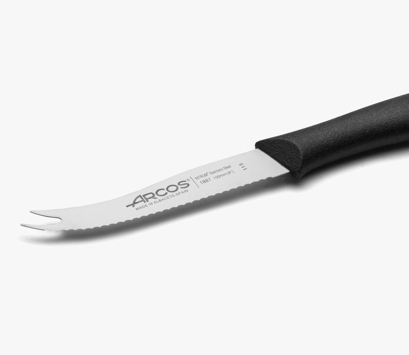 Das Käsemesser der Serie Nova, 105 mm von Arcos ist ein schmales, verzahntes Messer, ideal zum Aufspießen von zerkleinertem Käse.