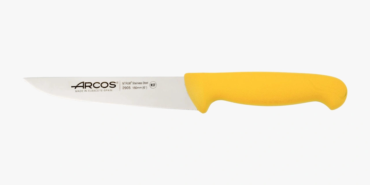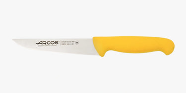 Die Marke Arcos bietet Ihnen das praktische Küchenmesser Serie 2900 mit gelbem Griff. Es verfügt über eine kräftige breite Klinge.
