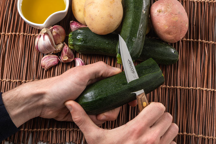 Die fünf Messer, die in keiner Küche fehlen dürfen, präsentiert Ihnen die spanische Firma Arcos in diesem spektakulären Set. Dazu erhalten Sie eine robuste Ledertasche mit ebenso vielen Fächern, um die Werkzeuge einzeln aufzubewahren und Reibung zu vermeiden. Die Tasche ist mit Metallbeschlägen und Steppnähten versehen.