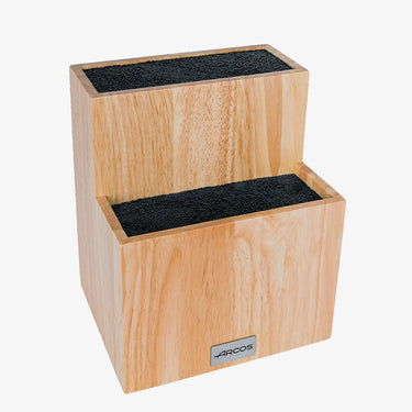 Messerblock mit zwei Höhen aus Kautschukholz, Maße 225 x 185 x 150 mm.
