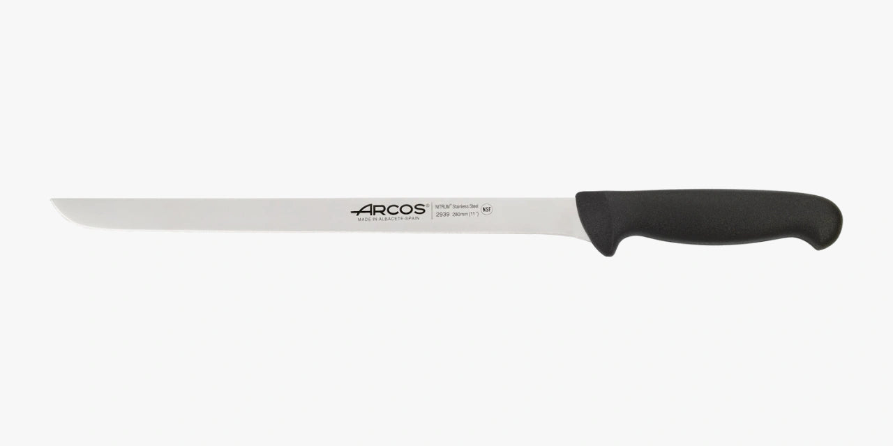 Das Schinkenmesser Serie 2900 280 mm ist besonders. Aufgrund seiner großen Länge wird es verwendet, um Scheiben von Schinken zu schneiden.