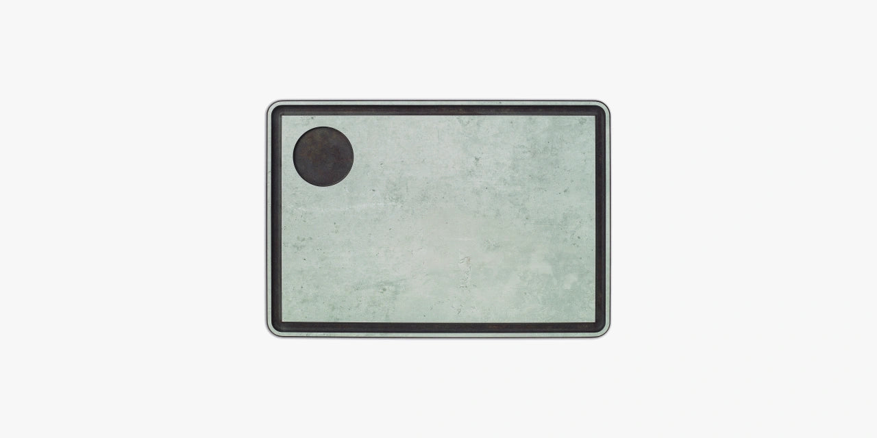 Die graue Servierbrett mit Rinne, 330 x 230 mm, ermöglicht es Ihnen, jedes Lebensmittel zu schneiden und es mit einer Dipschale zu servieren.