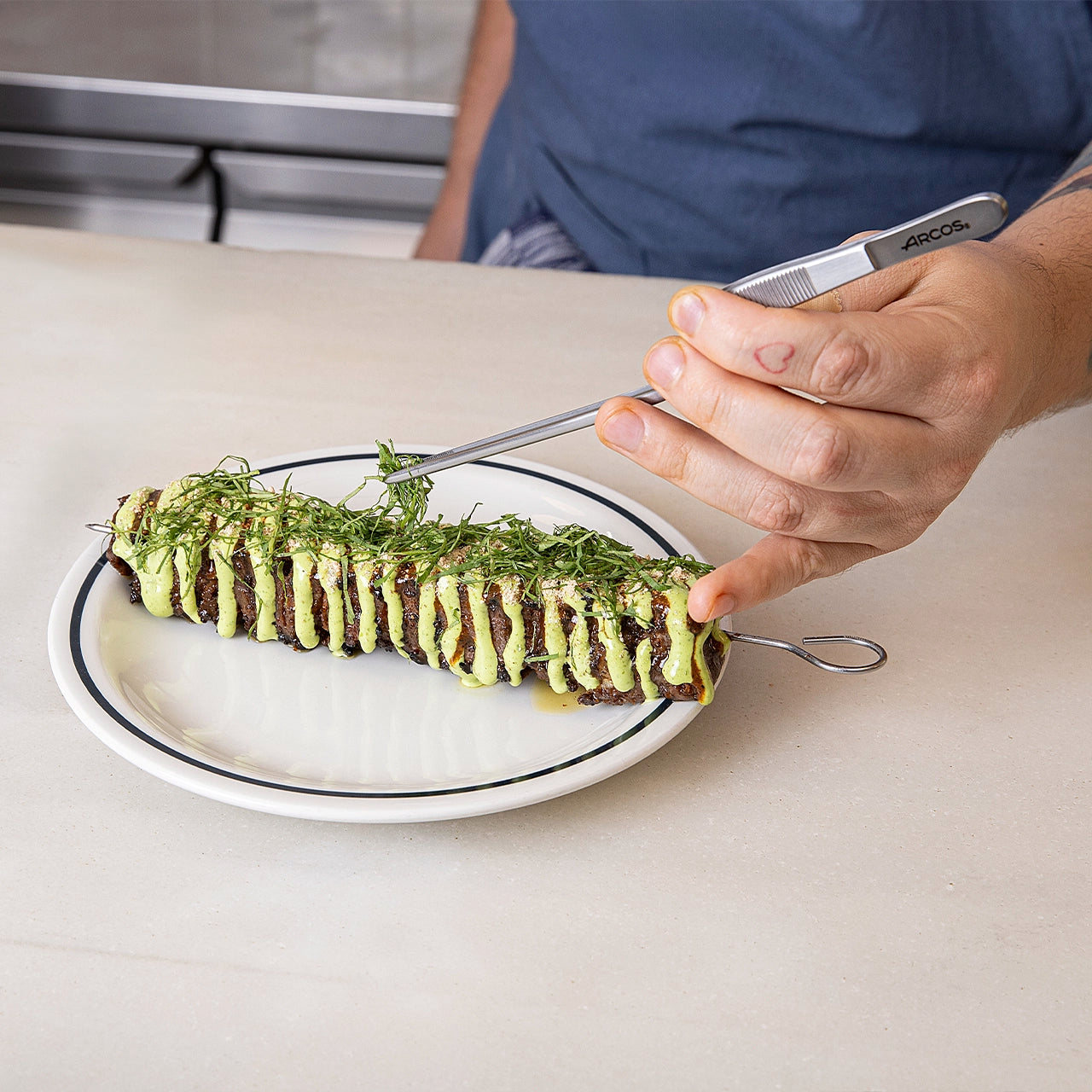 Die Servierzange 200 mm ermöglicht es Ihnen, Gerichte mit präzisen Details und einer ansprechenden Präsentation zuzubereiten.