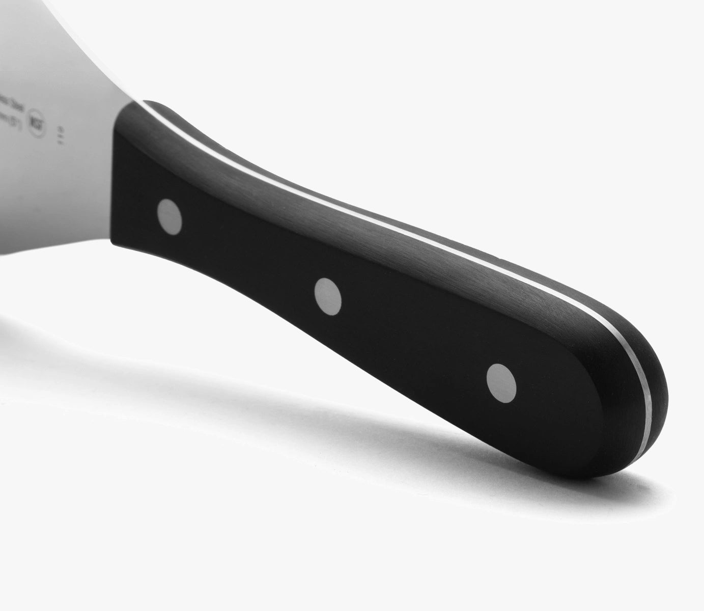 Es handelt sich um einen Spatel aus Edelstahl mit einer Klingenlänge von 125 x 120 mm. Der Edelstahl und der Griff aus Polyoxymethylen verleihen diesem Küchenwerkzeug eine hohe Haltbarkeit. Außerdem sind Edelstahlnieten angebracht, um Korrosion zu verhindern und eine sichere Verbindung zu gewährleisten.