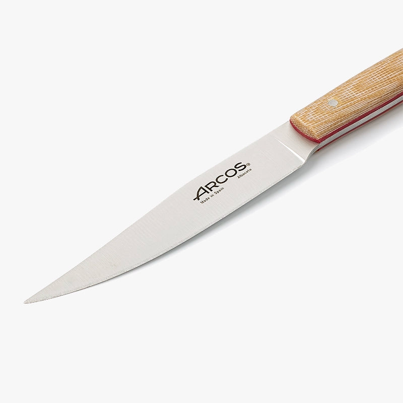 Verleihen Sie Ihrer Küche und Ihrem Tisch Stil mit dem Steakmesser Origin Micarta von Arcos. Ursprünglich aus Albacete, Spanien, im Jahr 1734, stammend, ist es ideal zum Filetieren von Fleisch, Fisch oder Huhn.