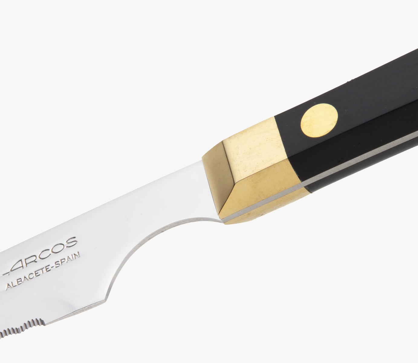 Entwickelt von Arcos in seinen Schmieden in Albacete, Spanien, mit seinem Team erfahrener Fachleute. Es gehört zur Serie Regia und passt zum Gabel dieser Serie, da es Farben und Design kombiniert. Es verwendet exklusiven Edelstahl, genannt NITRUM®, aufgrund seiner Behandlung mit Stickstoff. Dieses Material garantiert eine ausgezeichnete Haltbarkeit.