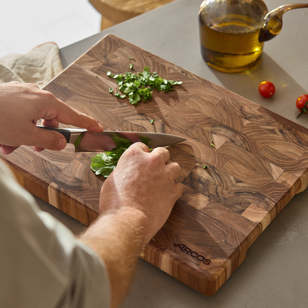Das Arcos-Teakbrett ist mehr als nur ein Küchenutensil: Es ist ein natürliches Designobjekt, das Stil, Funktionalität und Umweltbewusstsein vereint. Die perfekte Wahl für alle, die Qualität und Eleganz in jedem Detail ihrer Küche schätzen. Entdecken Sie es und machen Sie es noch heute zu Ihrem Unikat!