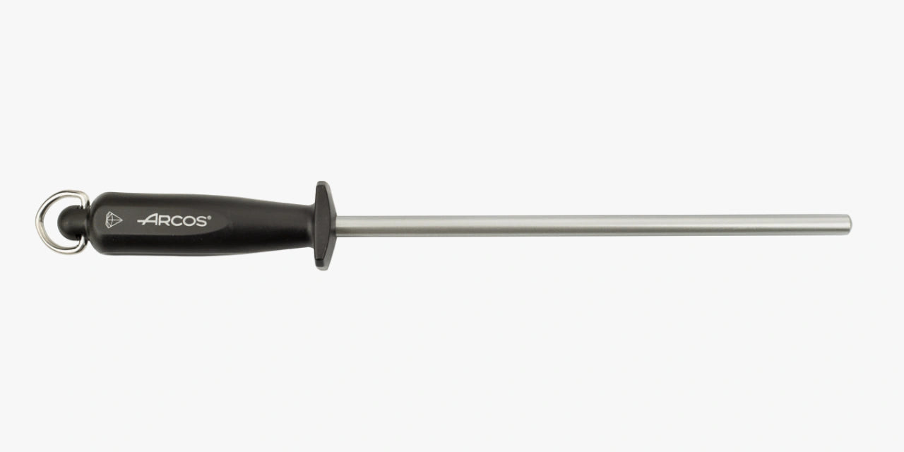 Die Arcos Wetzstahl besteht aus Kohlenstoffstahl, der zusätzlich mit Diamant beschichtet ist. Es ist ideal, um Ihre Messer leicht zu schärfen und lange Zeit in einwandfreiem Zustand zu halten.