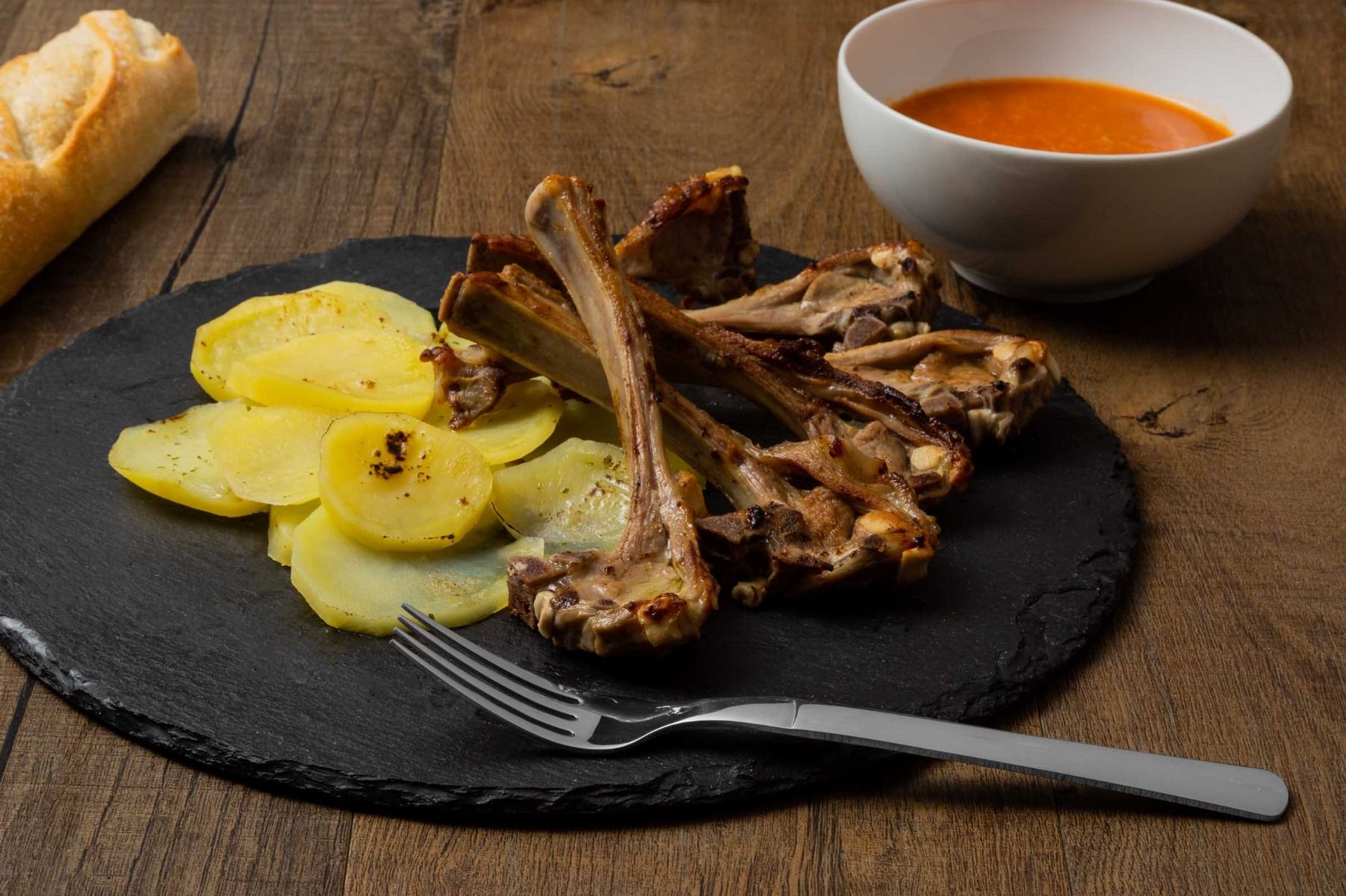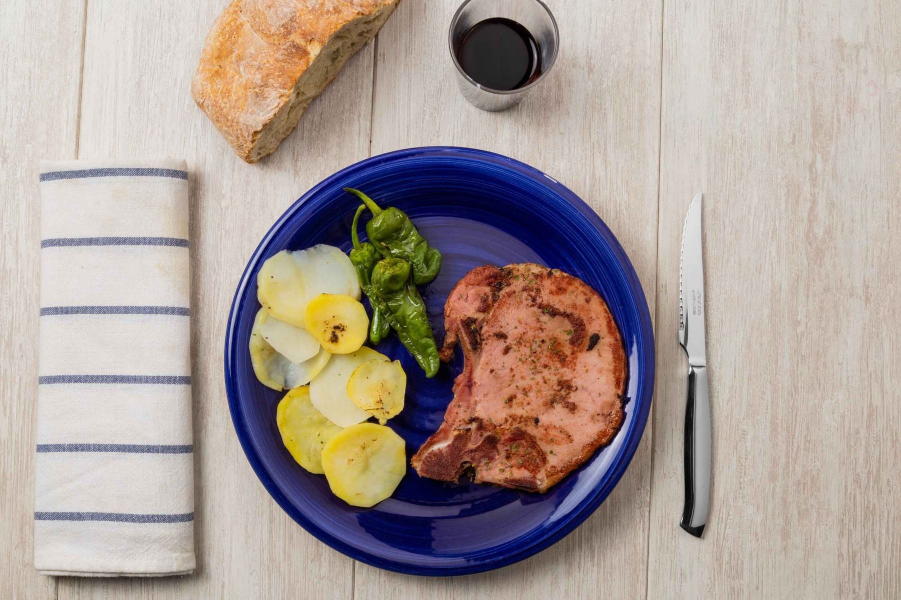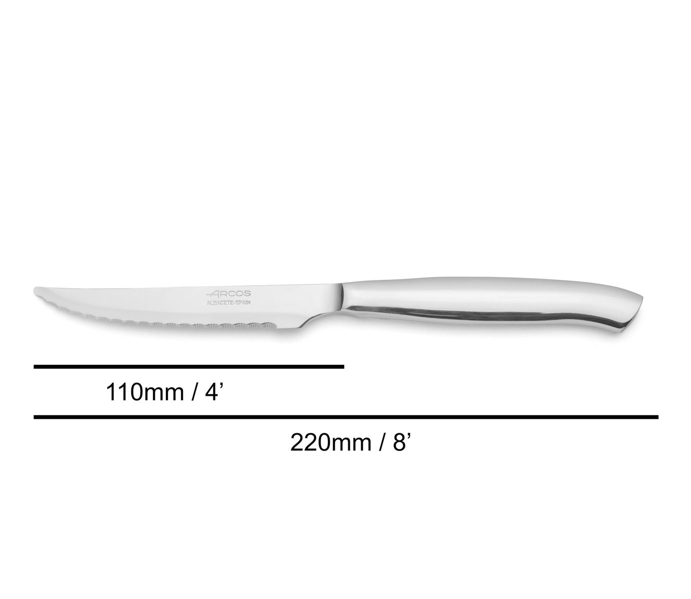- Incluye una cuchara sopera de 210 mm, un cuchillo chuletero con filo serrado de 220 mm y un tenedor con 4 pinchadores de 200 mm.