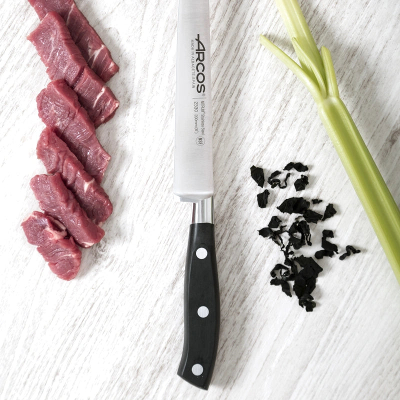 - 200 mm blade made of NITRUM® stainless steel, a material resistant to corrosion and the effects of moisture.