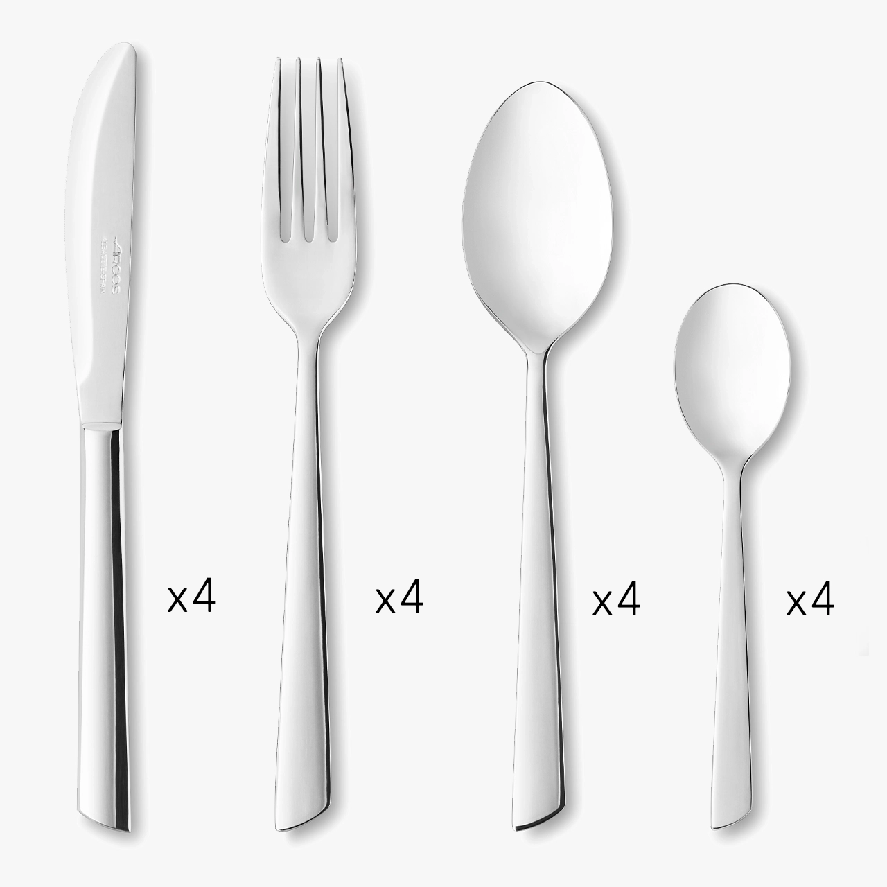 The Arcos Toscana cutlery set contains 16 pieces that make up the complete cutlery set for 4 people in total.