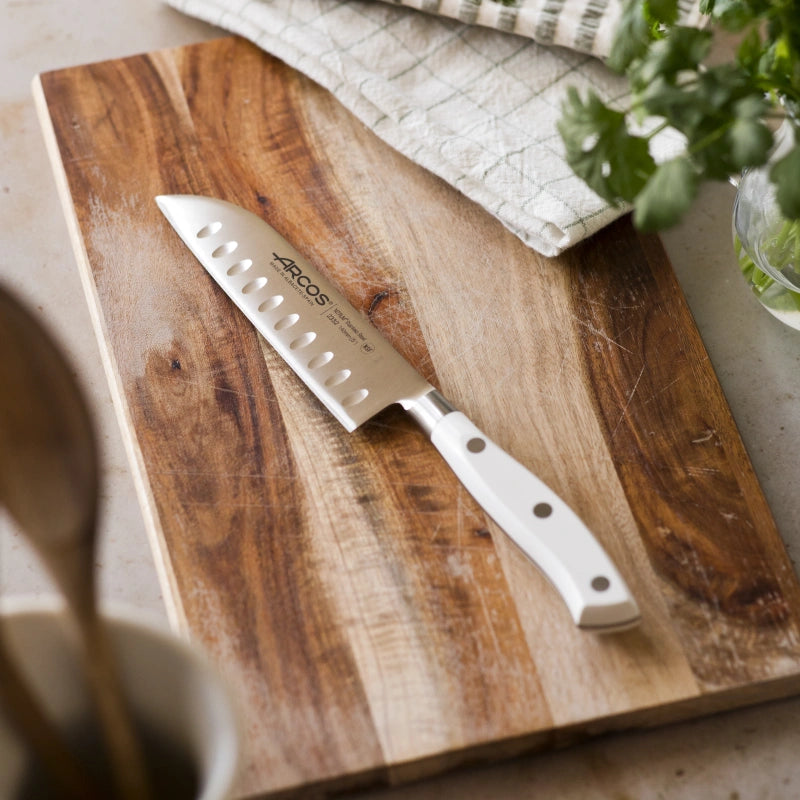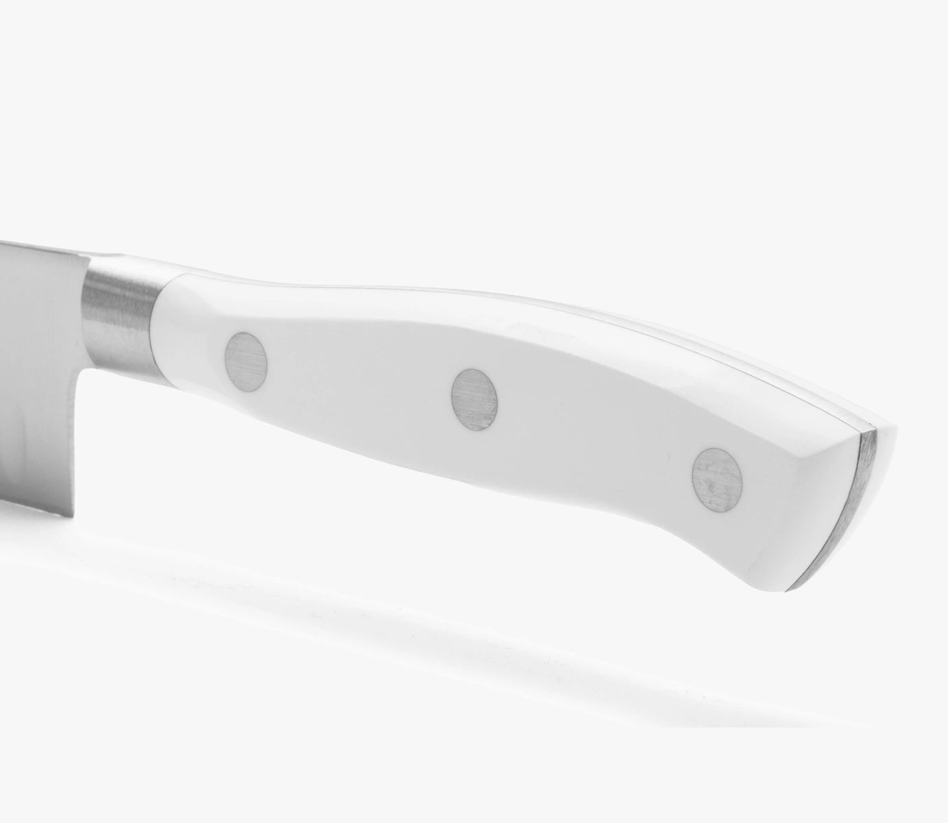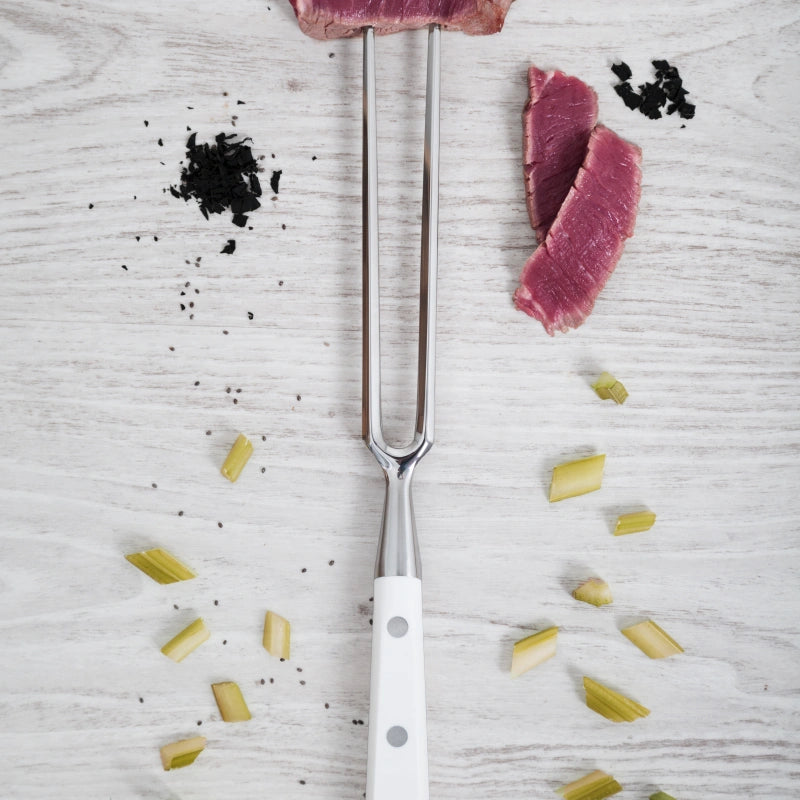 Noteworthy for its white handle, shape, which an elegrant French style ferrule. . Its refined and highly rust resistant finish making it the star attraction of the collection. Greater user comfort.
