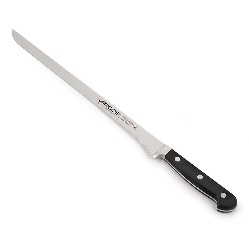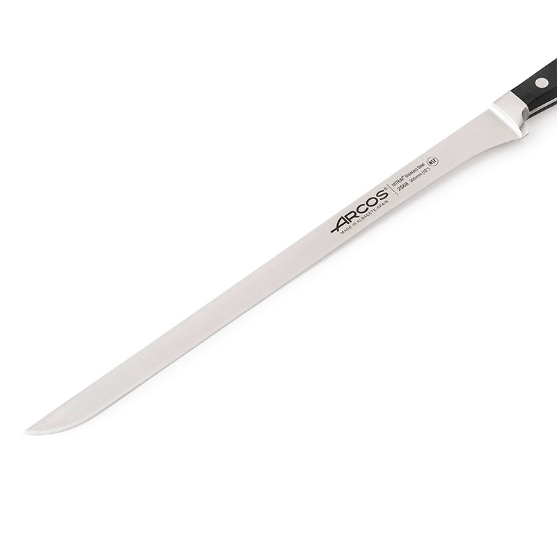 This ham knife has a 300 mm blade and an ergonomic handle that will allow you to easily cut large pieces of ham or meat. It has been manufactured by the Spanish company Arcos, in its forges in Albacete, by experts and with specialised and improved techniques since 1734.