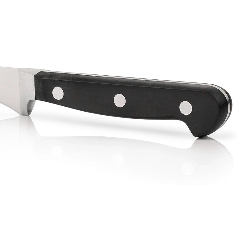 - Reinforced with tongue and groove stainless steel rivets, which guarantee safety in the kitchen.