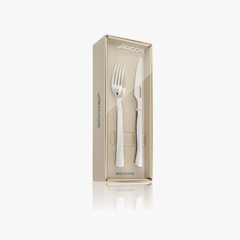 Set 6 pcs. Fork and 6 pcs. Monoblock Steak Knife made of stainless steel.They are essential pieces for eating at the table.