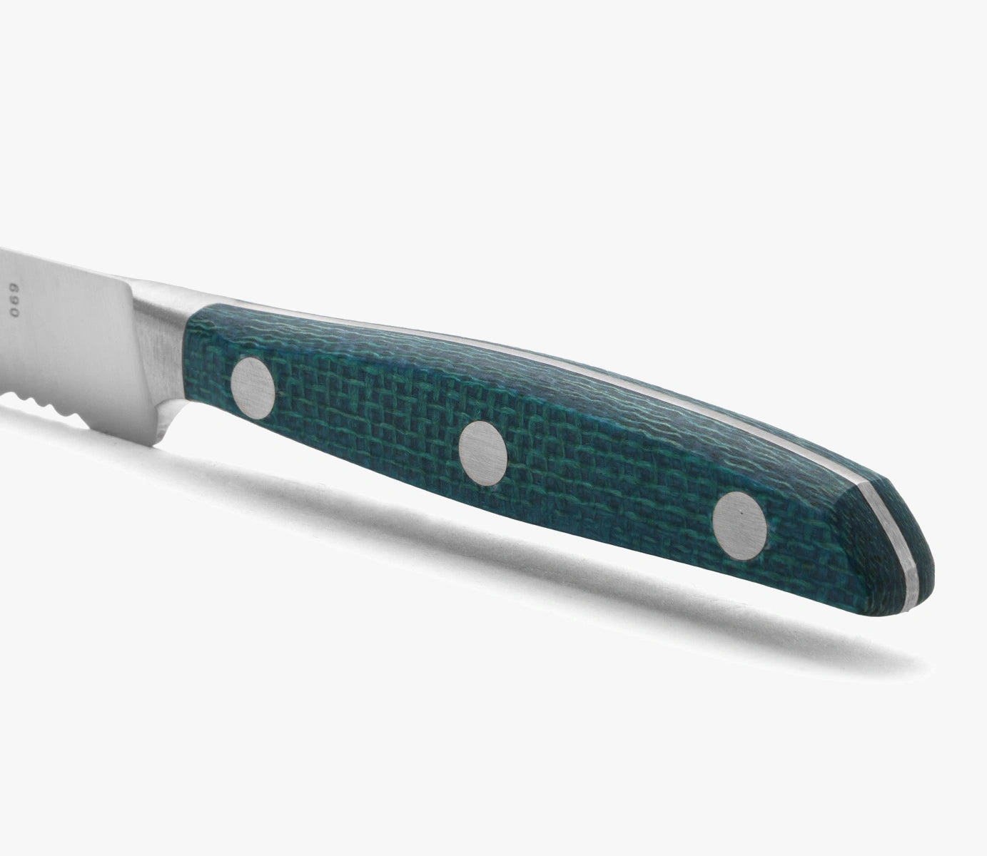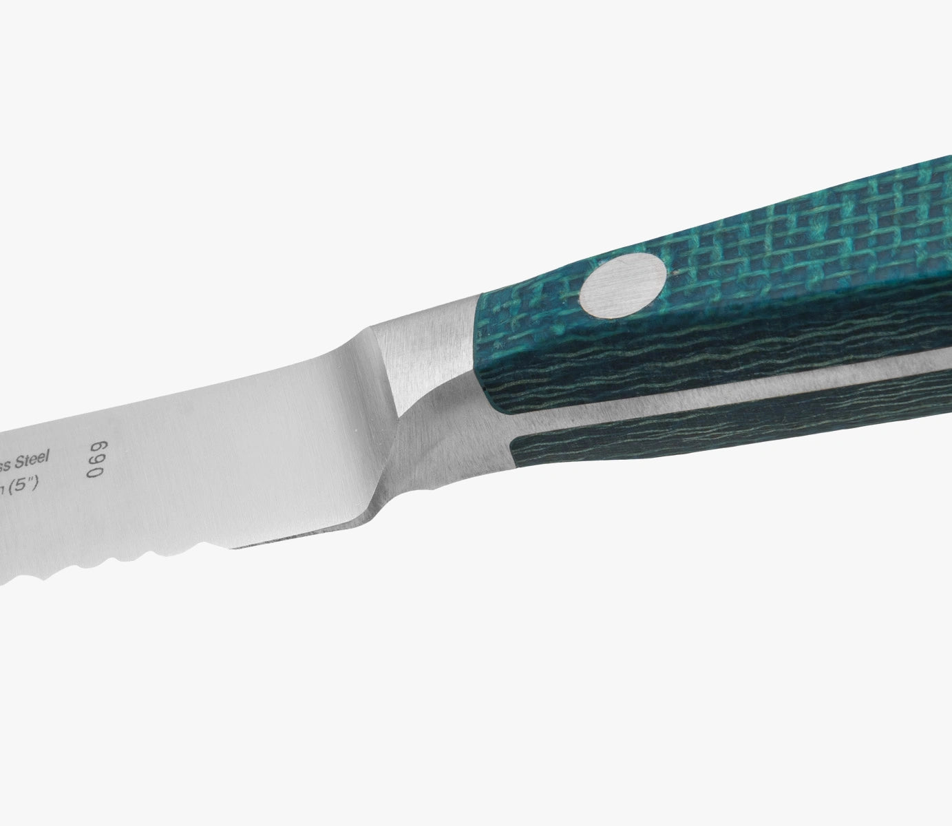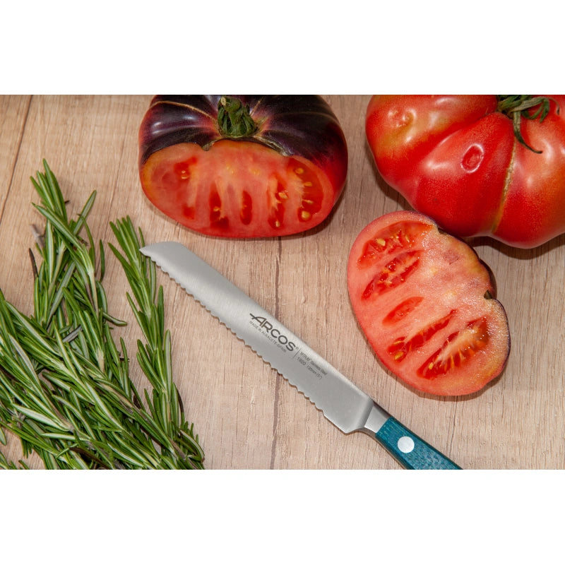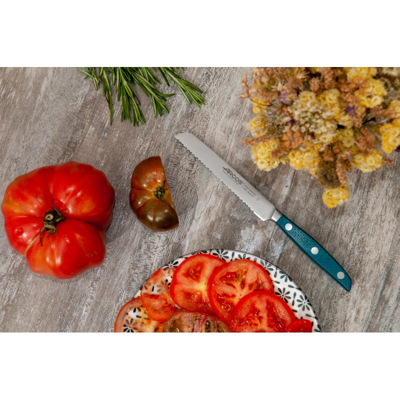 The Tomato knife 130 mm from the Brooklyn series has a stainless steel blade with a serrated edge. It will allow you to make fine cuts of tomatoes, avoiding deformation of their structure. You can also use it to obtain portions of bread without the bread falling apart.