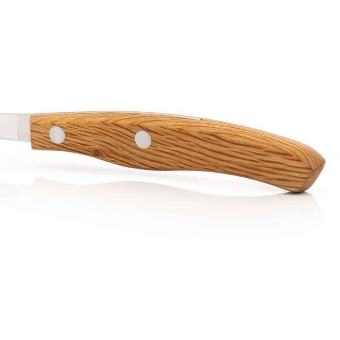 Natural holm oak wood handle: Ensures an ergonomic grip, warm feel, and uniqueness in every piece.