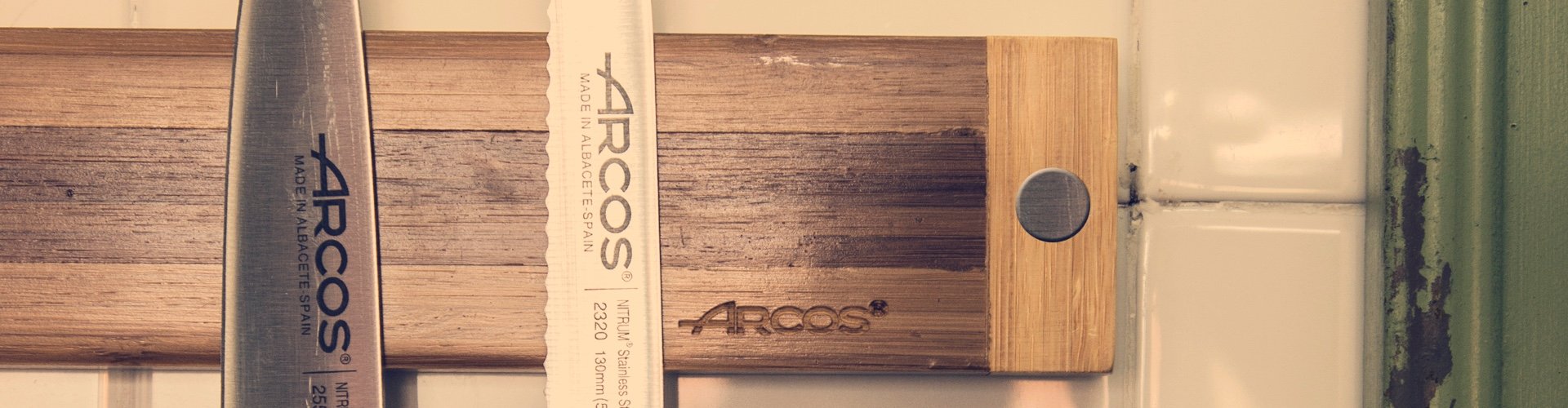 Chez Arcos, nous proposons différents tailles, designs et modèles de supports et d'aimants pour couteaux. Fabriqués en acier, PVC, bambou ou bois de hêtre. De diverses dimensions et styles, vous trouverez celle qui convient le mieux à votre cuisine.