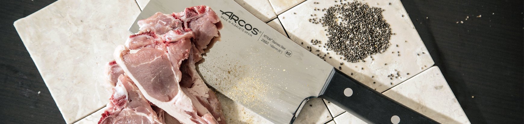 Si vous êtes habitué à manipuler de la viande, chez Arcos, nous vous recommandons d'utiliser le couperet de cuisine pour couper ce type d'aliments afin de ne pas user vos autres ensembles de couteaux.