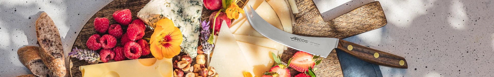 Découvrez la collection de couteaux à fromage disponibles chez Arcos et choisissez le couteau pour couper et tartiner qui convient le mieux aux types de fromages que vous consommez le plus.