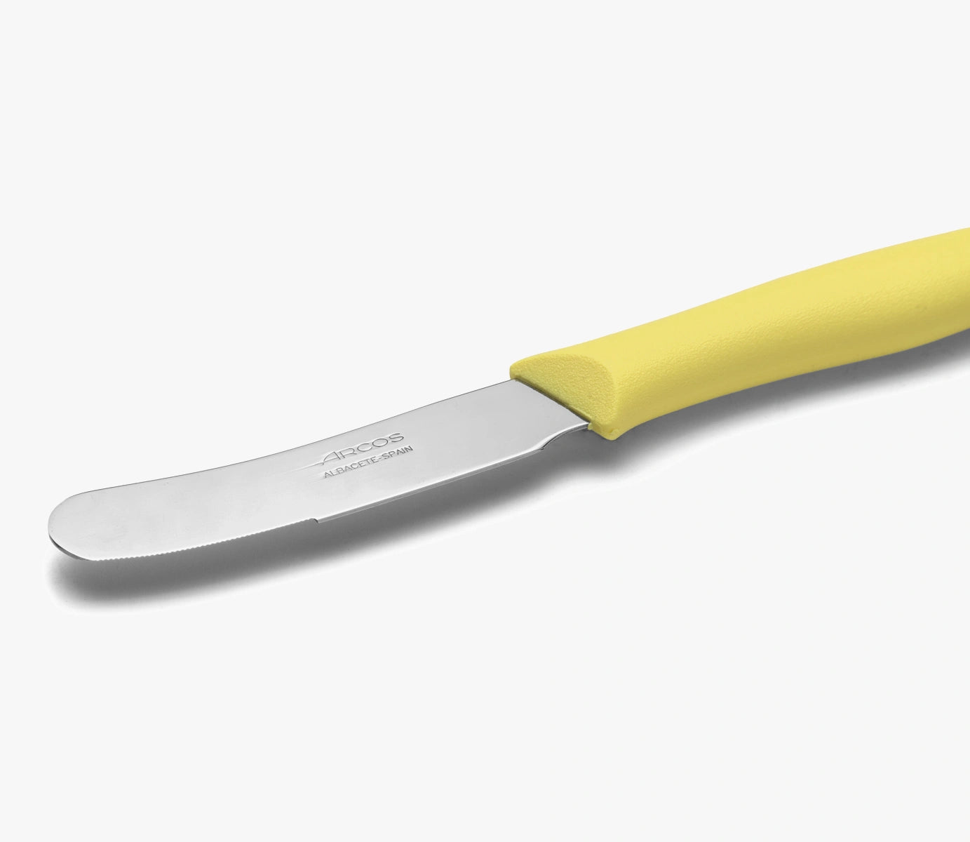 Le couteau à beurre de la série Nova sera très utile pour vos petits déjeuners et vos goûters. Sa fabrication par injection, avec le sceau de qualité d'une entreprise espagnole avec plus de deux siècles et demi d'expérience dans le secteur, garantit sa qualité. De plus, son manche de couleur citron lui donne une touche originale.