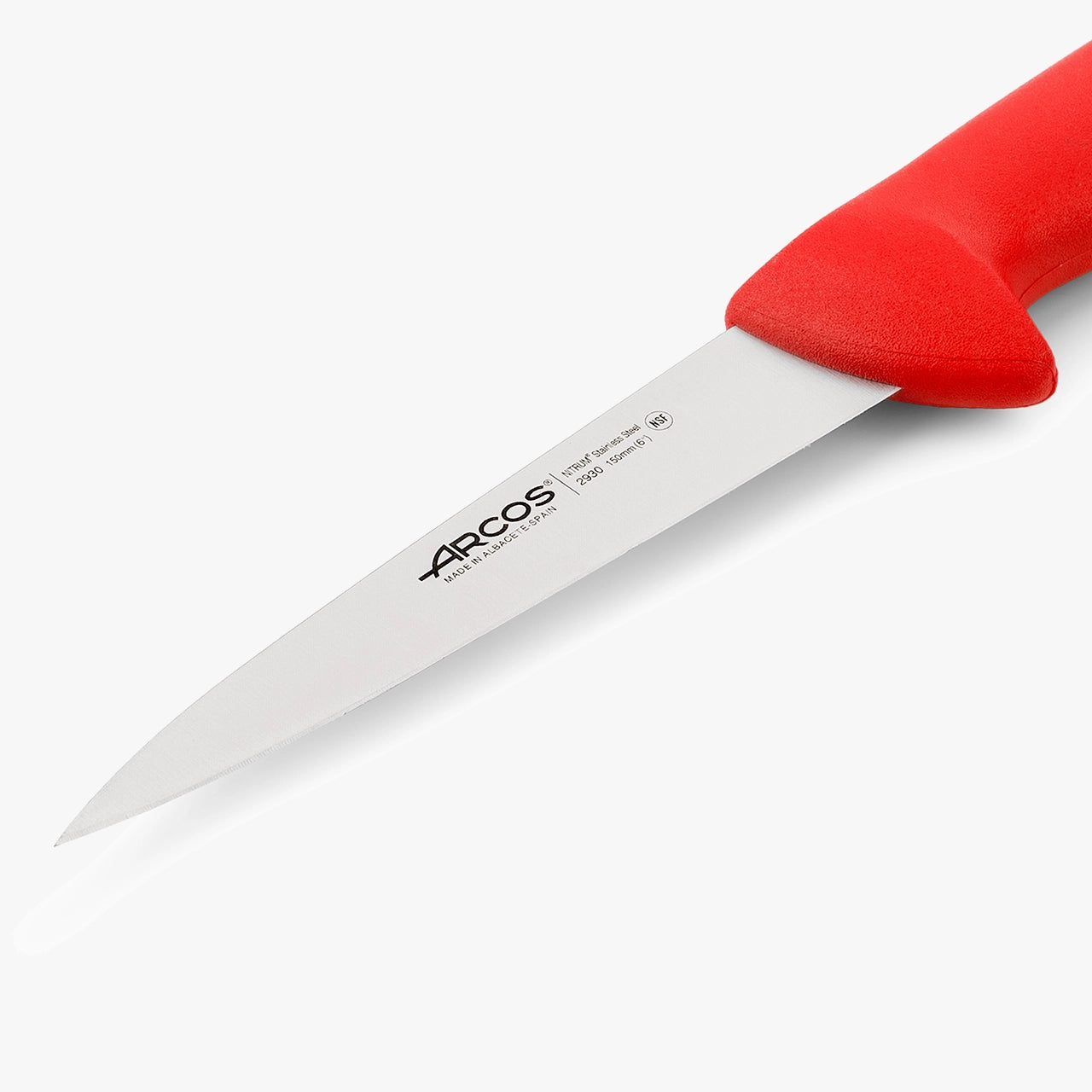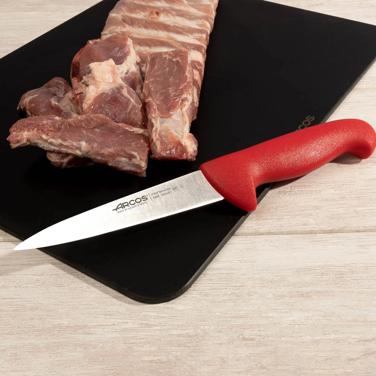 La lame étroite, avec dos courbé, fil lisse et pointe aiguë du Couteau Saigner rouge 2900 150 mm a la forme idéale pour réaliser des processus de découpe de morceaux de viande nécessitant une coupe esthétique et polie. Voici quelques-uns des avantages de cet ustensile culinaire d'Arcos que vous devez avoir dans votre cuisine.