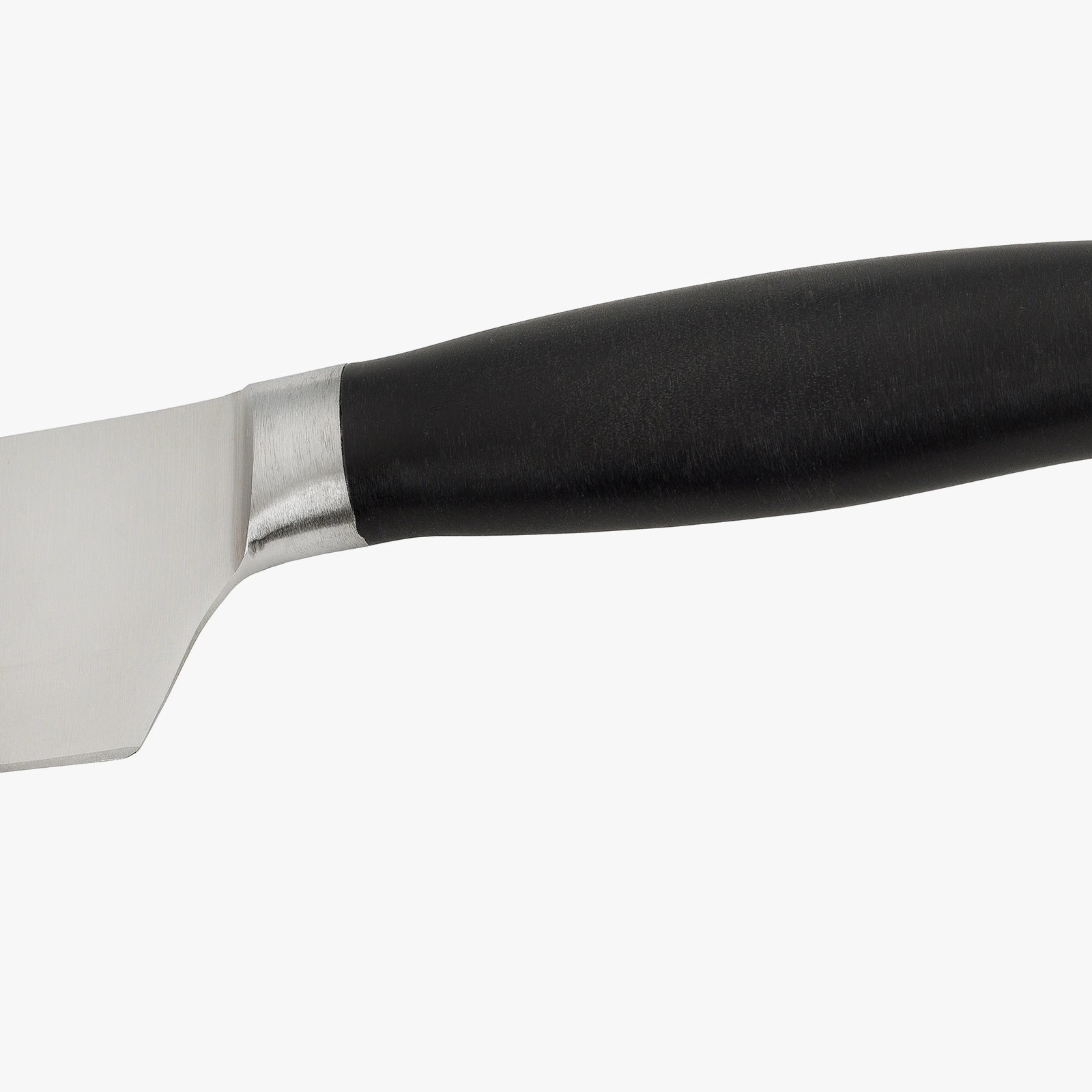 Le manche est fabriqué en polypropylène (PP), un matériau hygiénique, très léger et résistant aux coups, produits chimiques et hautes températures. Il est soudé à la lame par un process d'injection, donnant un couteau solide, robuste et inséparable.