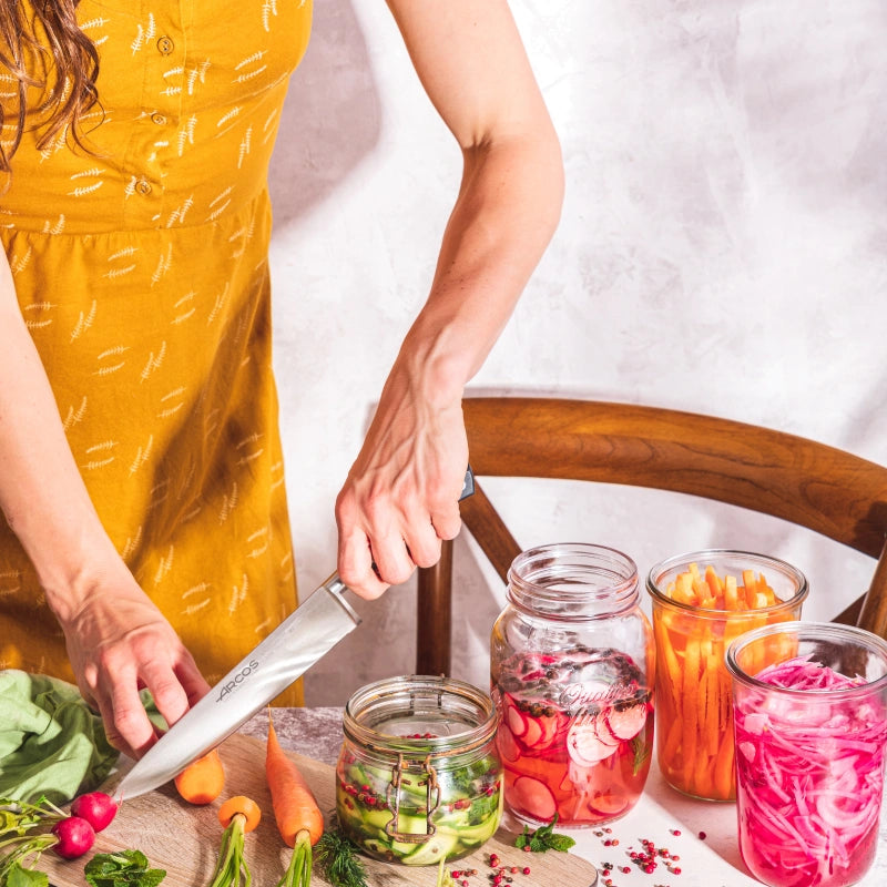 - Lame en acier inoxydable NITRUM®, un matériau breveté par Arcos qui garantit une bonne coupe.