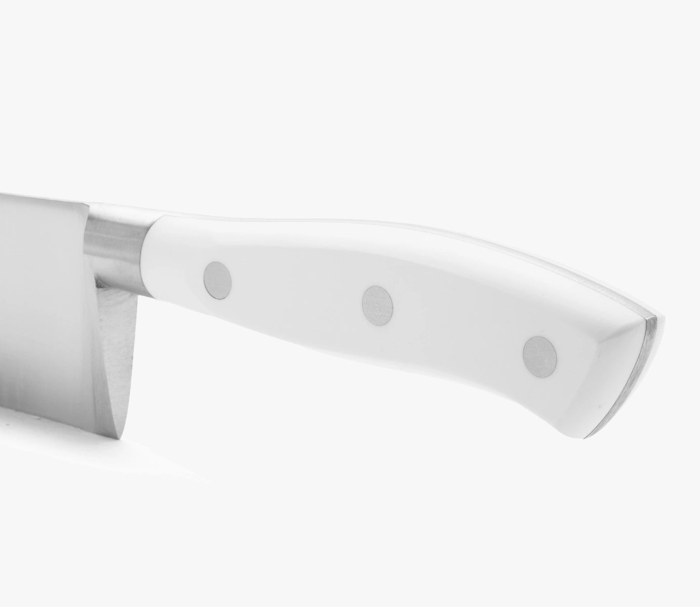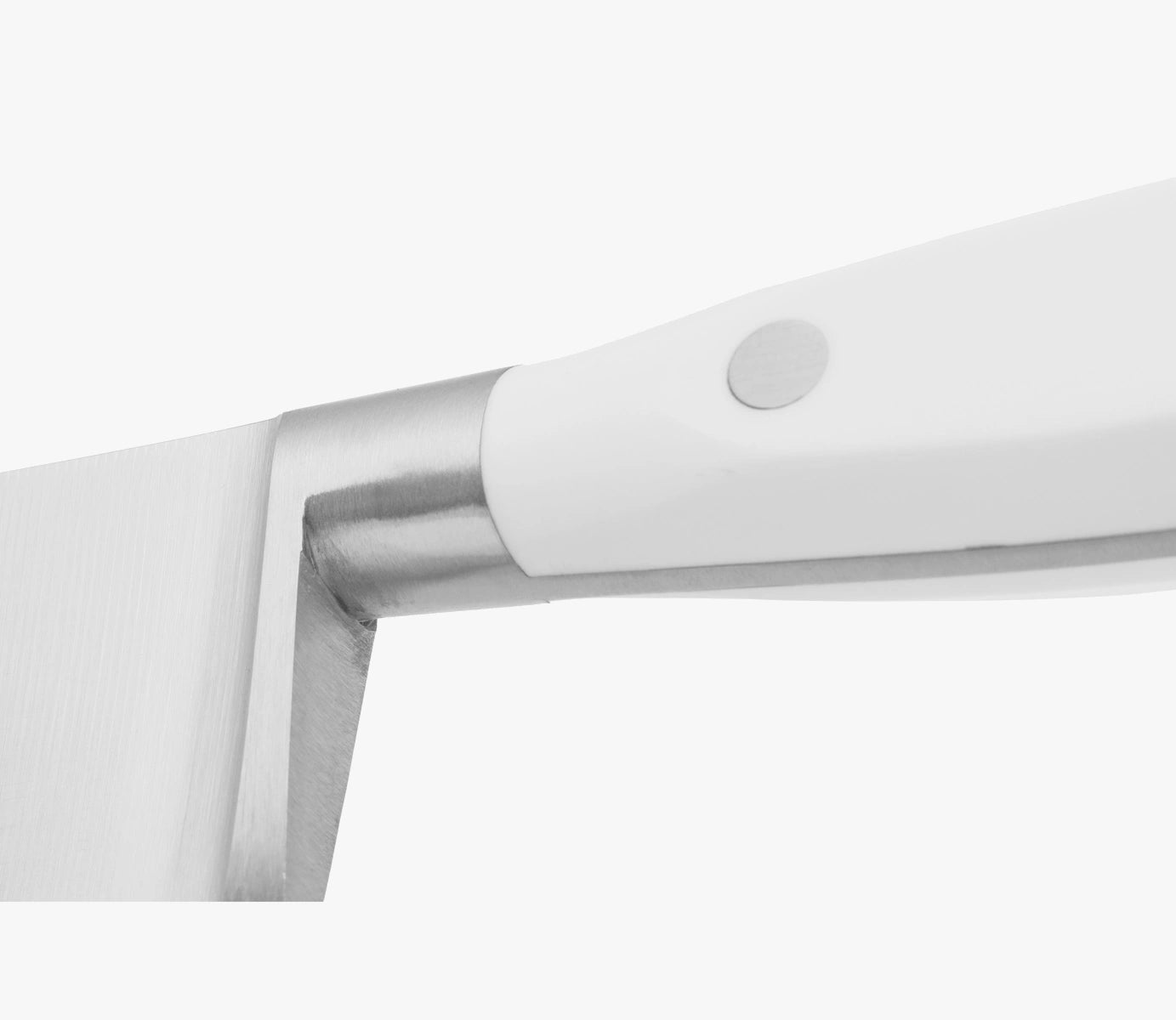Son manche blanc en polioxyméthylène favorise une prise en main confortable et sécurisée. Il comporte une fixation inébranlable à la lame, grâce aux rivets en acier inoxydable. Il intègre également la technologie Bactiproof Silver, qui réduit l'accumulation de bactéries et en fait un outil hygiénique. Il dispose d'une excellente résistance à la corrosion.