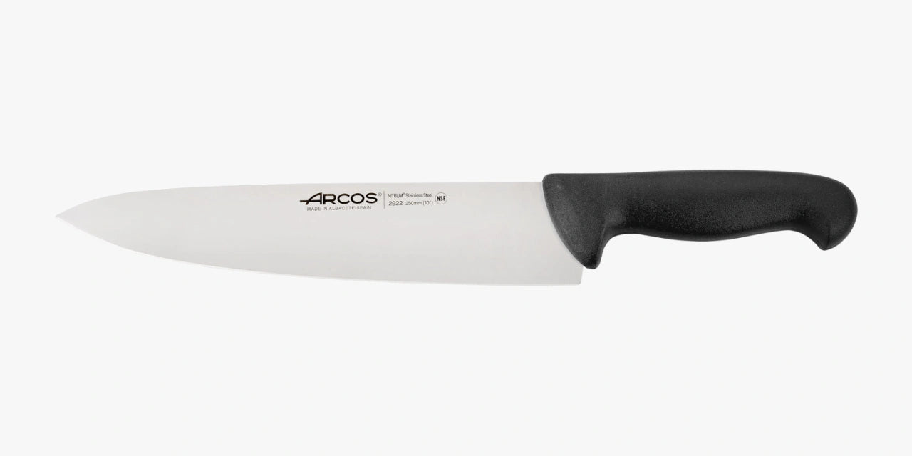 Lame large et forte avec un talon, fil lisse. Couteau multi usage pour les professionnels et les cuisiniers. Permet d’émincer et de couper.