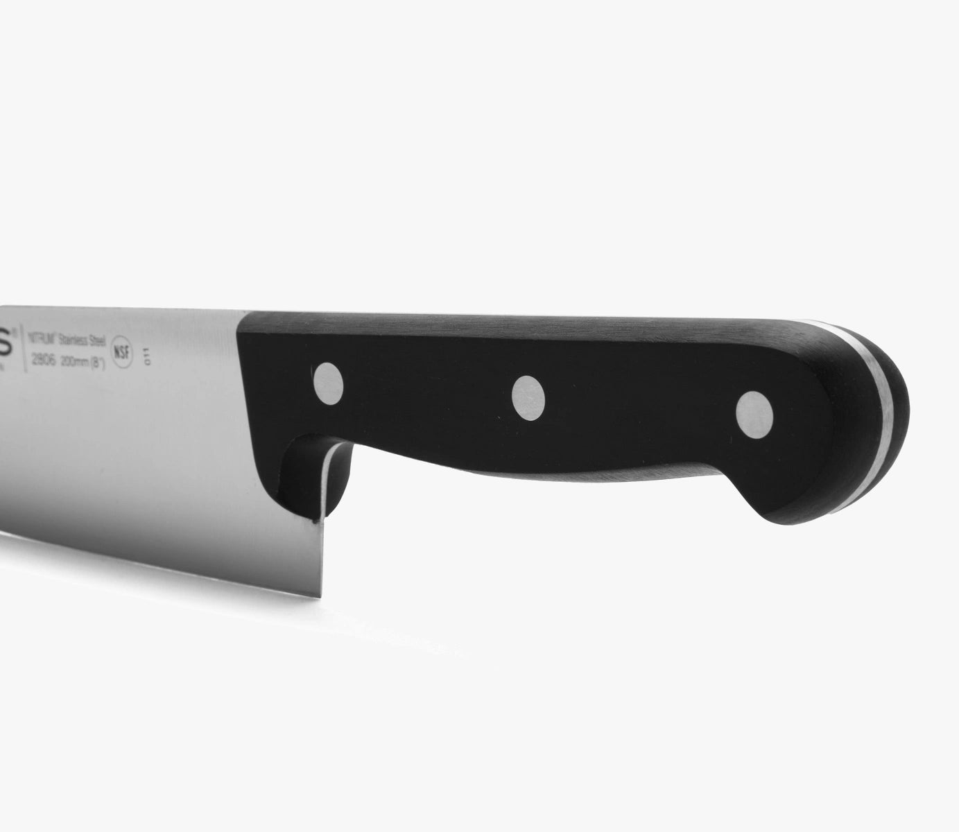 Couteau de chef de la gamme Universal de 200 mm avec lequel vous pouvez couper et préparer vos plats préférés, qu'il s'agisse de viandes, de poissons, de volailles, de fruits ou de légumes.