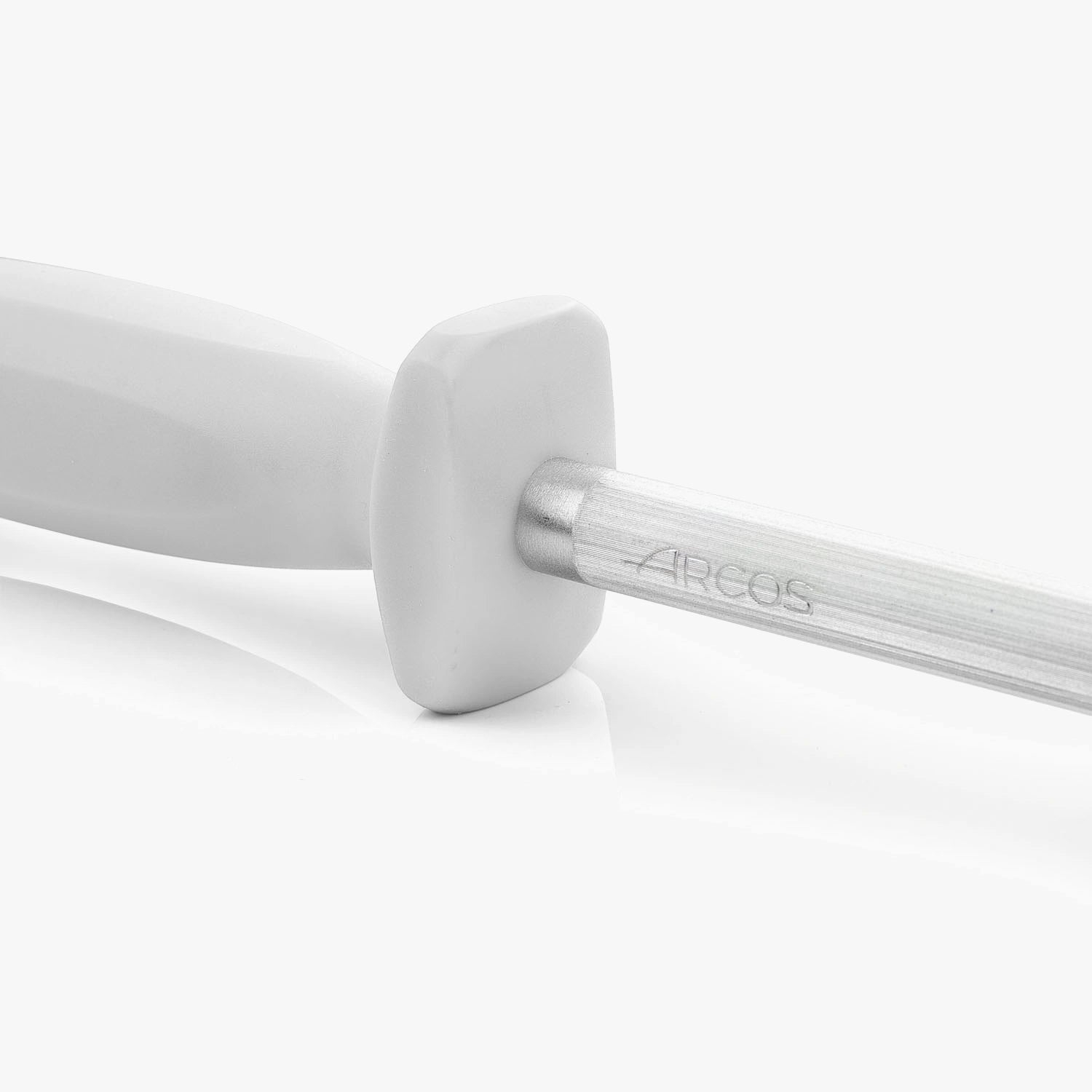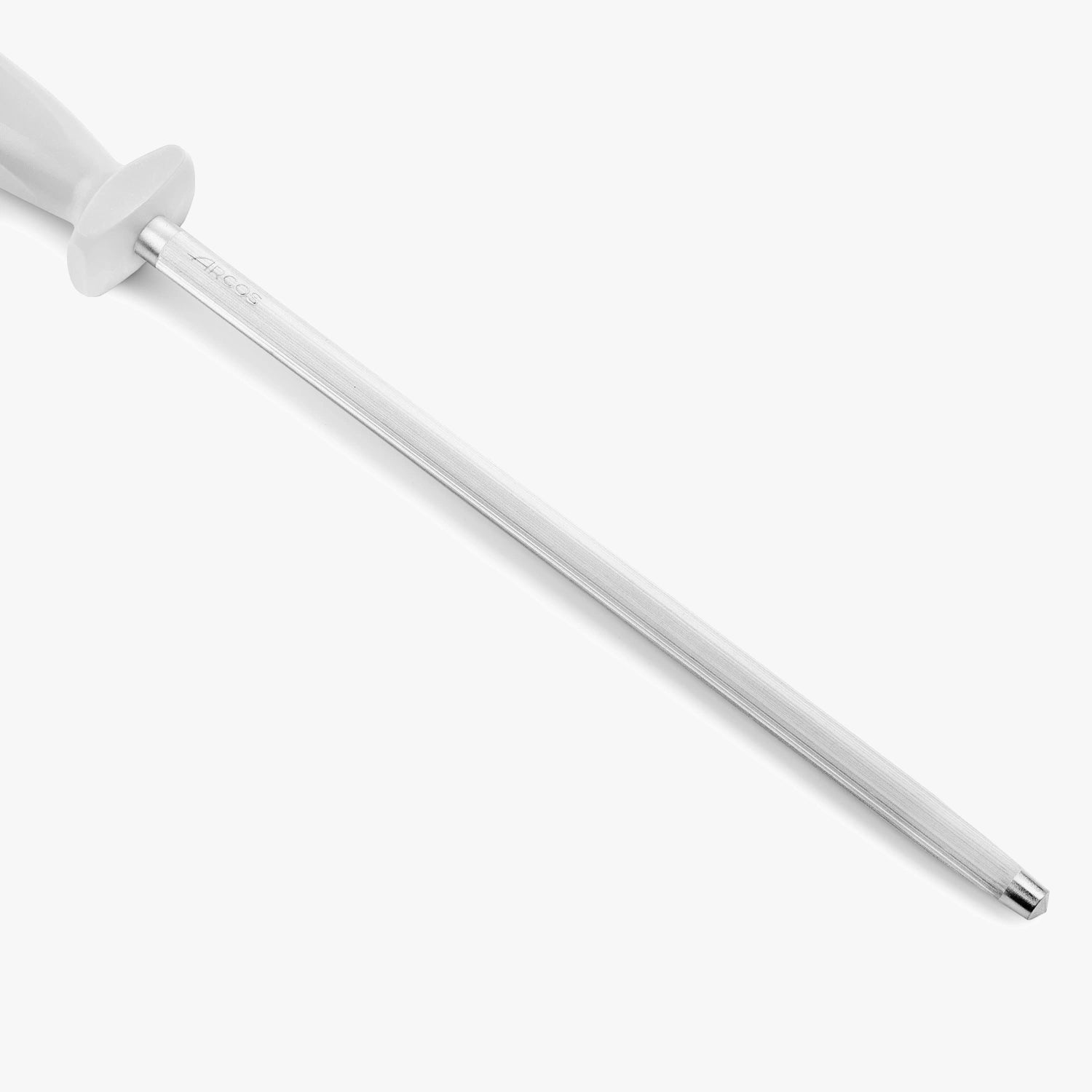 Le fusil à aiguiser chrome mèche ronde 300 mm / Ø13 mm blanc Arcos, redresse le fil de vos couteaux en éliminant les irrégularités sur la lame liées aux petits chocs du quotidien .