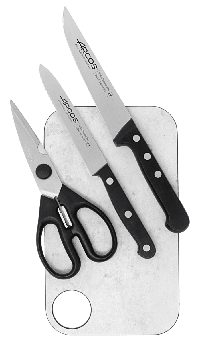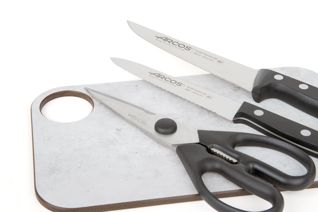 - Gracias a la experimentada trayectoria de Arcos, presente desde 1734, estos cuchillos cuentan con materiales de alta calidad y eficacia.