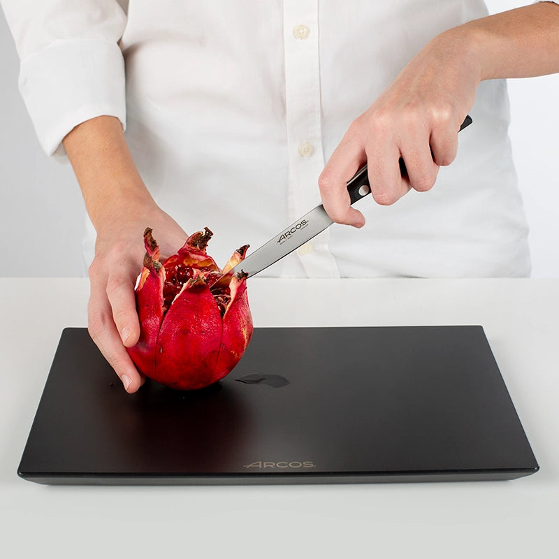 La Tabla de Corte HDPE tamaño pequeño de Arcos está fabricada en polietileno de alta densidad, un material higiénico y duradero que garantiza la máxima seguridad alimentaria. Su tamaño compacto la hace práctica para tareas diarias de corte y preparación.