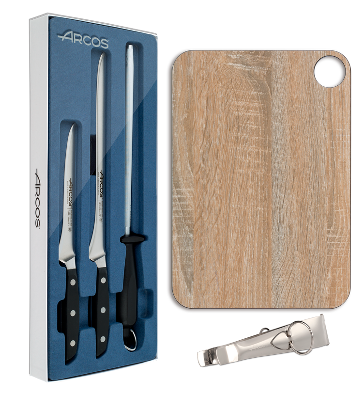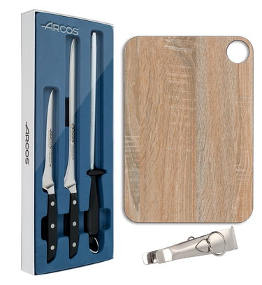 Este set es ideal para los amantes del jamón, pues tiene todo lo que se necesita para cortarlo y presentarlo de forma adecuada y elegante. Además, todos los elementos que lo componen están hechos con tradición y tecnología Arcos, por lo que es un referente de excelente calidad y durabilidad.