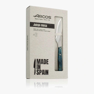 Ensemble de 6 pièces. Couteaux à steak en bois de peuplier compressé teinté en bleu-vert, idéal pour ajouter une touche d'originalité à votre table.
