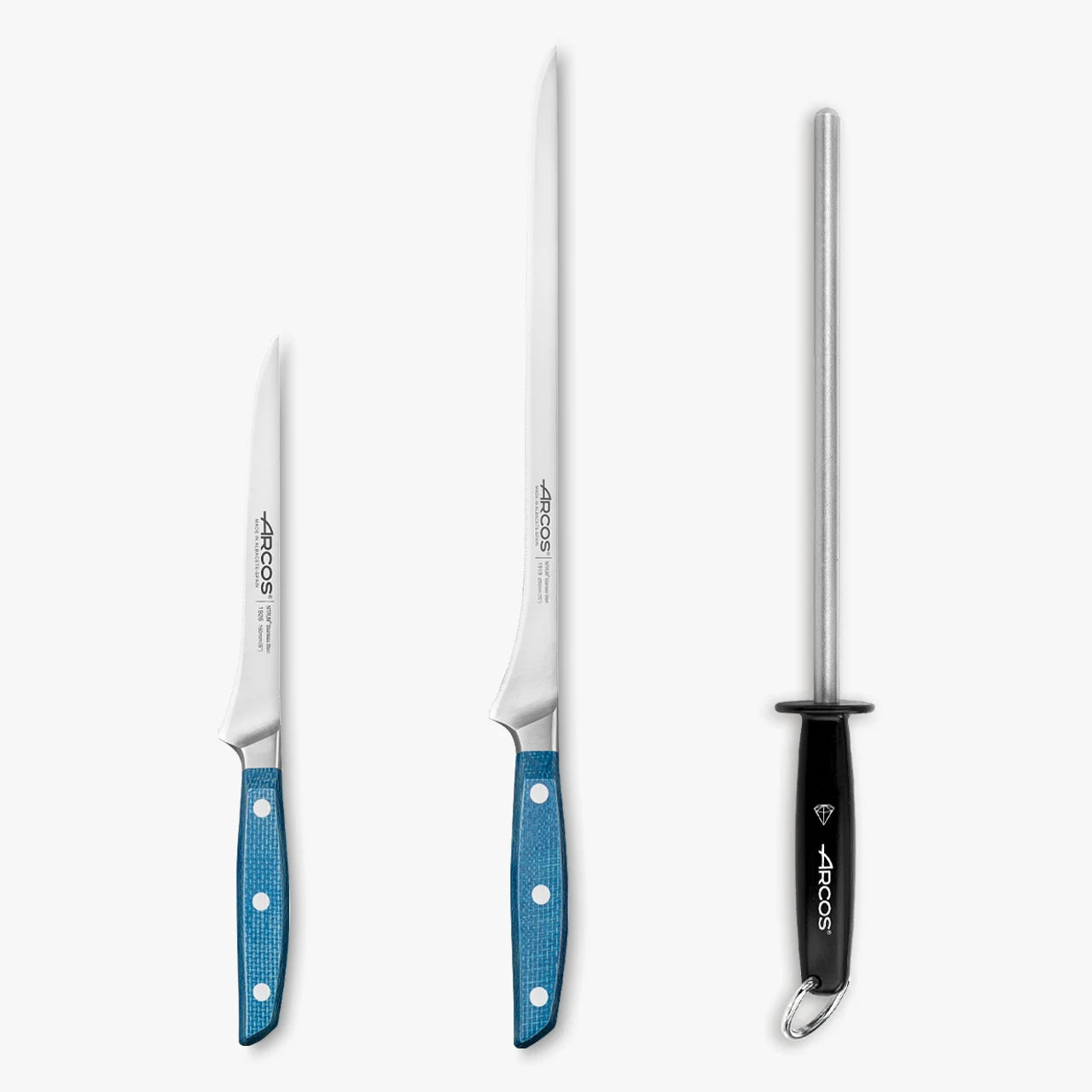 Taglia il prosciutto come un professionista con i nostri set per prosciutto. Dotati di coltelli ad alta precisione, supporti stabili e accessori essenziali, garantiscono tagli perfetti e sicuri. Ideali per gustare il prosciutto a casa o durante eventi speciali. Scegli qualità, precisione e stile con Arcos!