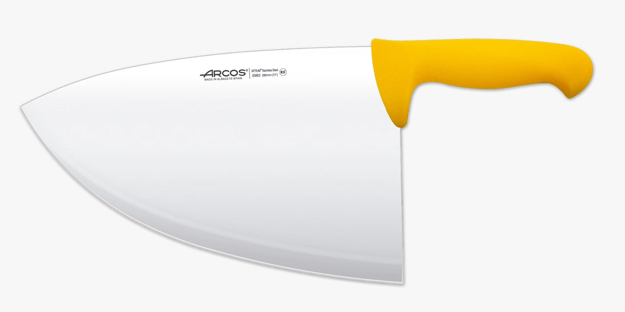 Coltello per fette Serie 2900 di Arcos con design triangolare. È perfetto per il taglio professionale di costolette e carni di grandi dimensioni.