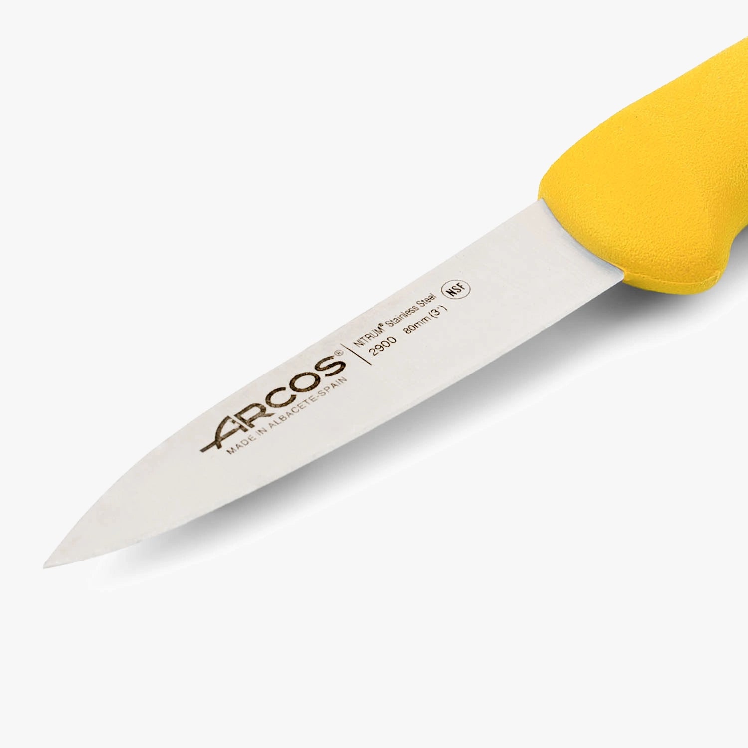 Il coltello Spelucchino serie 2900 da 80 mm giallo di Arcos ti consente di sbucciare, tagliare e pulire facilmente frutta, tuberi e verdure.