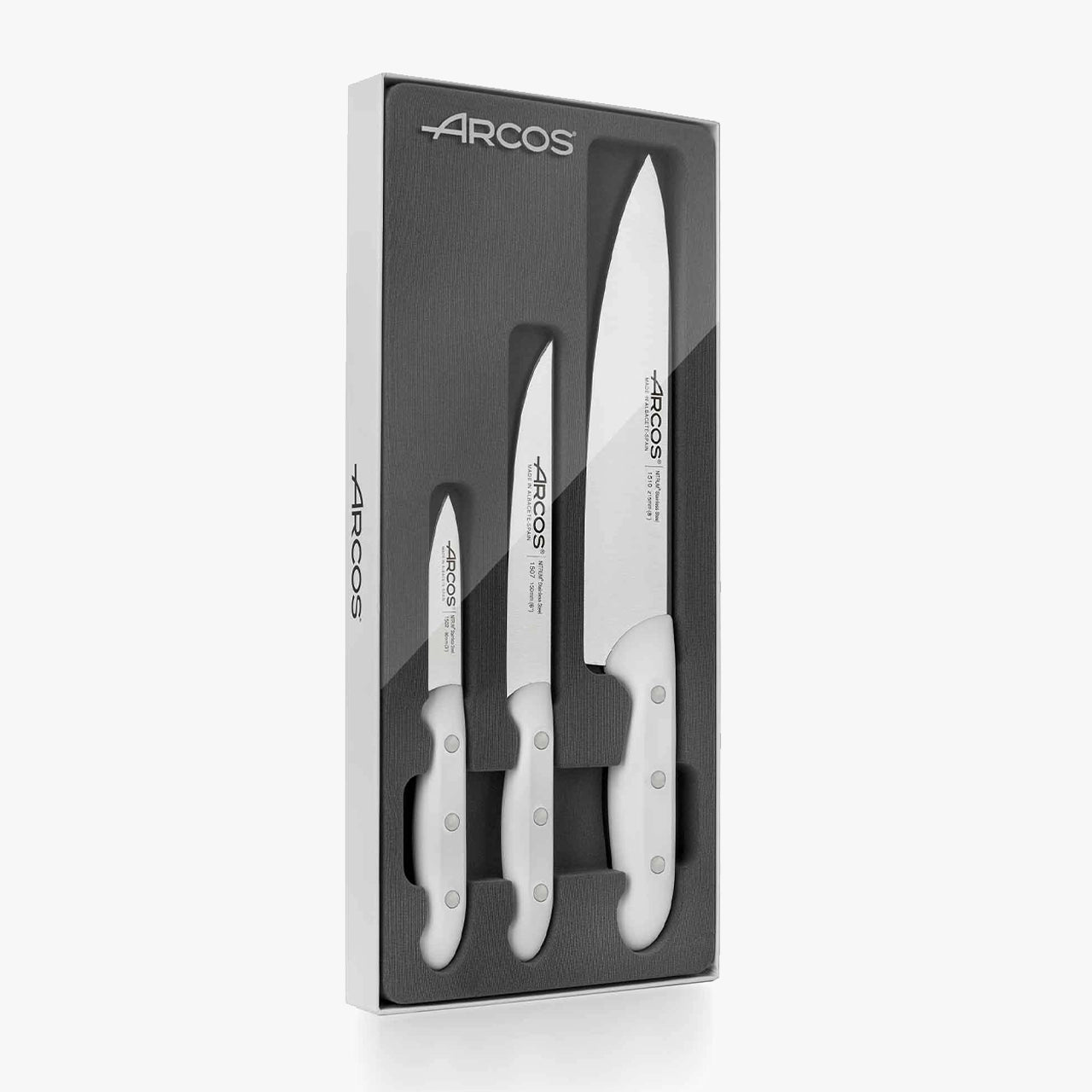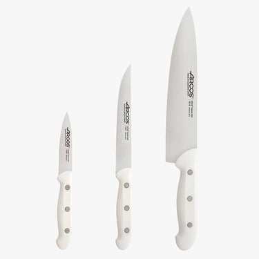 Questo set è perfetto sia per cuochi professionisti che per principianti, permettendo un'esperienza di taglio precisa e comoda nella tua cucina quotidiana. Non aspettare oltre e equipaggia la tua cucina con il Set di Coltelli White Basic di Arcos!