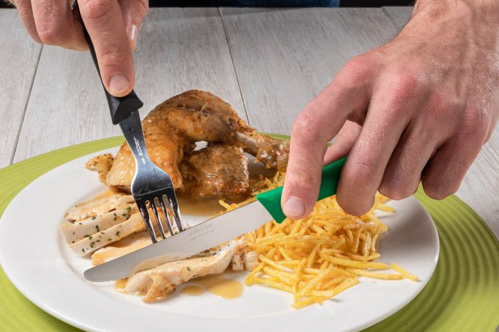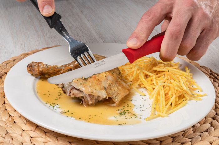 Este juego de mondadores y cuchillos de mesa es propiedad de Arcos, marca albaceteña especialista en fabricación y afilado de cuchillería desde su fundación en 1734.