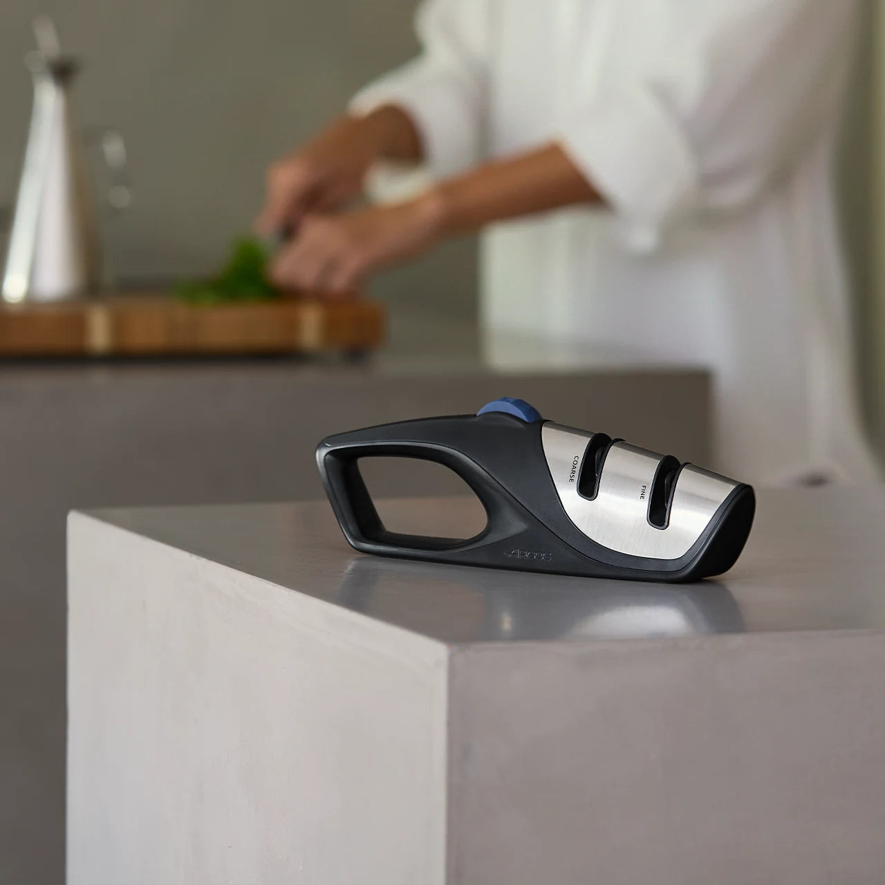 El Afilador Multiángulo ofrece un afilado profesional en casa: práctico, duradero y seguro. Una sola herramienta que mantiene todos tus cuchillos listos para cualquier preparación.
