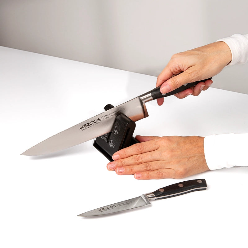 Mantener los cuchillos bien afilados es esencial para agilizar las tareas en cocina. Además, favorece la seguridad, ya que tendrás más precisión y no tendrás que realizar grandes esfuerzos al cortar. Compra ahora el Afilador Profesional de Bolsillo para disfrutar de la calidad Arcos. Contamos con la mejor tecnologías en utensilios de cocina.