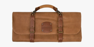 La bolsa de cuchillos Arcos de piel y herrajes metálicos con capacidad para 10 piezas es recomendable para trasladar de manera segura tus cuchillos. *Cuchillos no incluidos
